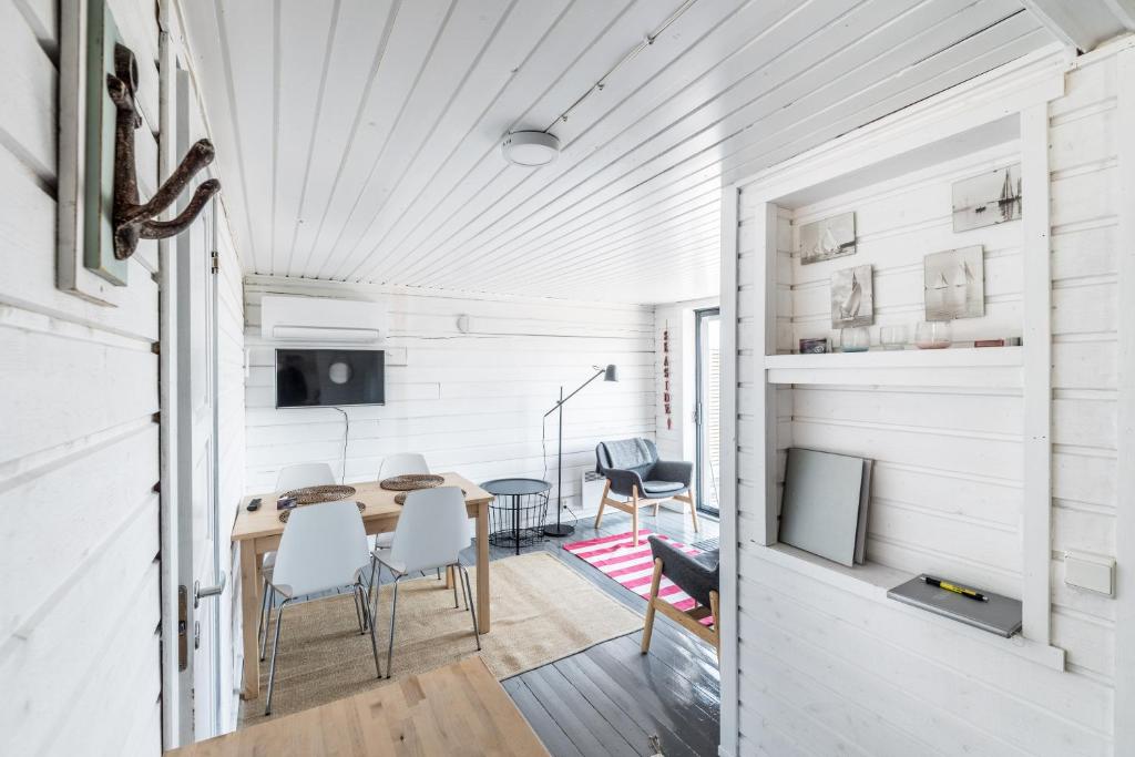 "A hidden gem! Small and peaceful place with less than ten cottages at an amazingly beautiful location. Many things to do just at the cottage site: kayaks, rowing boats, sup-boards to use free of charge! The sauna that you can use privately for an hour a day was really good and the beach sandy and shallow, very good for swimming! The cottage was very clean and comfortable with several tables and terraces facing in different directions on top of beautiful cliffs. Would come again and recommemd to all - and if you're choosing between this and Havsvidden, we also cycled there for breakfast on one day to get a bit more luxury into our stay, but were very happy to return to Rörvik to have our own peace and beautiful nature around! Also good for cyclists, was possible to reach from Mariehamn in one day!"